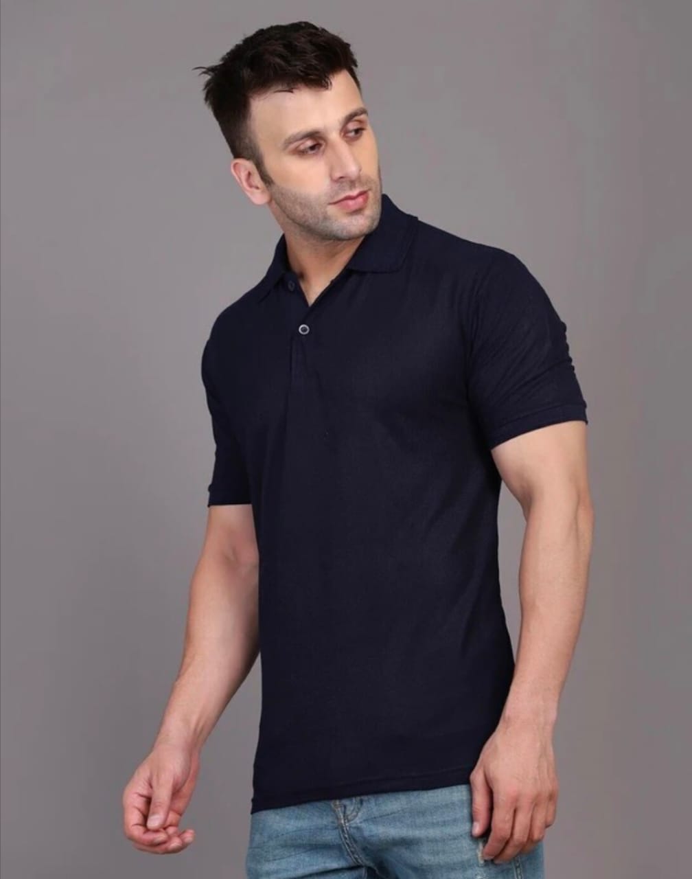 Be unique with Navy Blue Customized Half Sleeve Men’s Cotton T-Shirt from Oteess.
