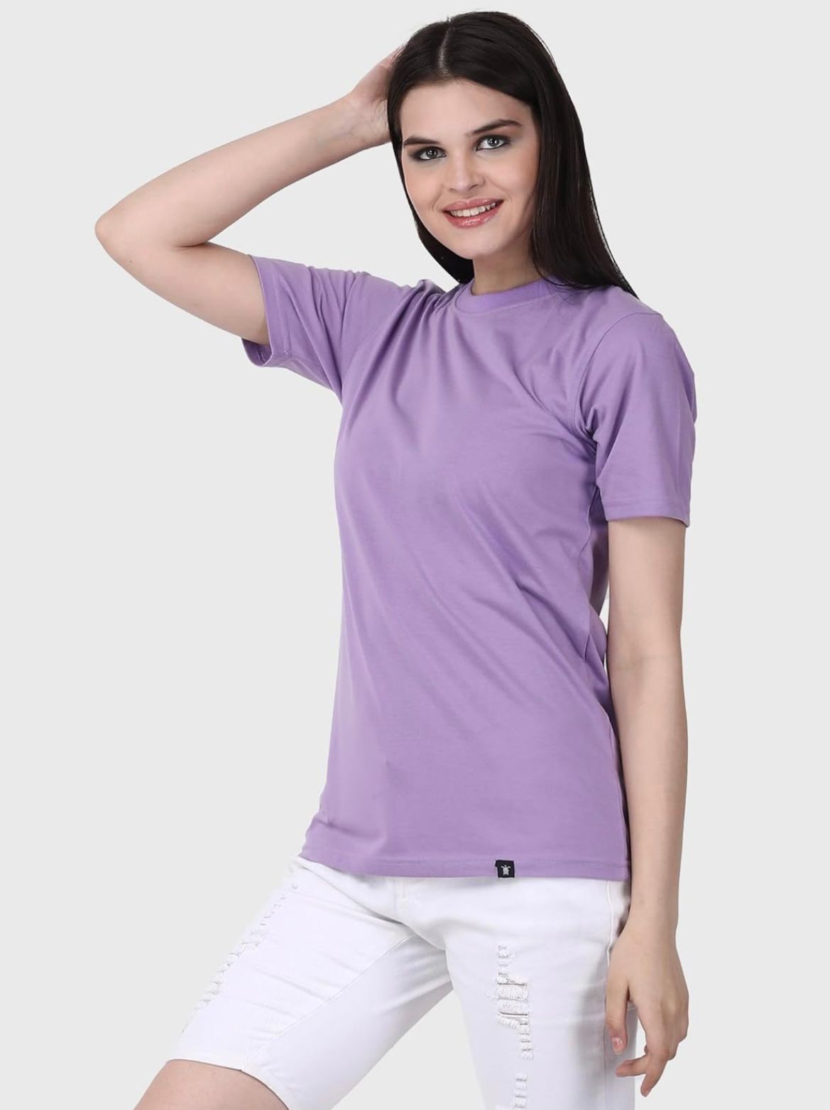 Women’s Boyfriend Fit Solid Lavender Cotton T-Shirt